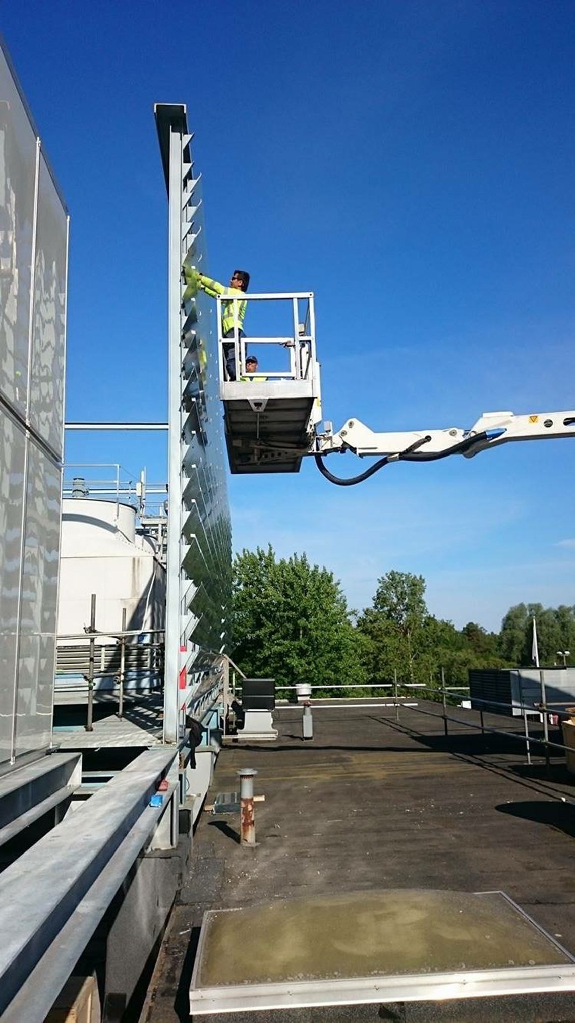 Stålkonstruktioner i form av förstärkningar av pelare, kyltorn och ljudskärm.